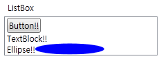 ListBox는 위와 같이 ListBox를 설정해 준 후 아이템들을 추가해주면 된다. 그리고 아이템 하나당 하나의 리스트를 차지하므로 하나의 리스트 안에 여러개의 아이템을 추가하고 싶을 때엔 위와 같이 StackPanel 등을 사용하여주면 유용하다.